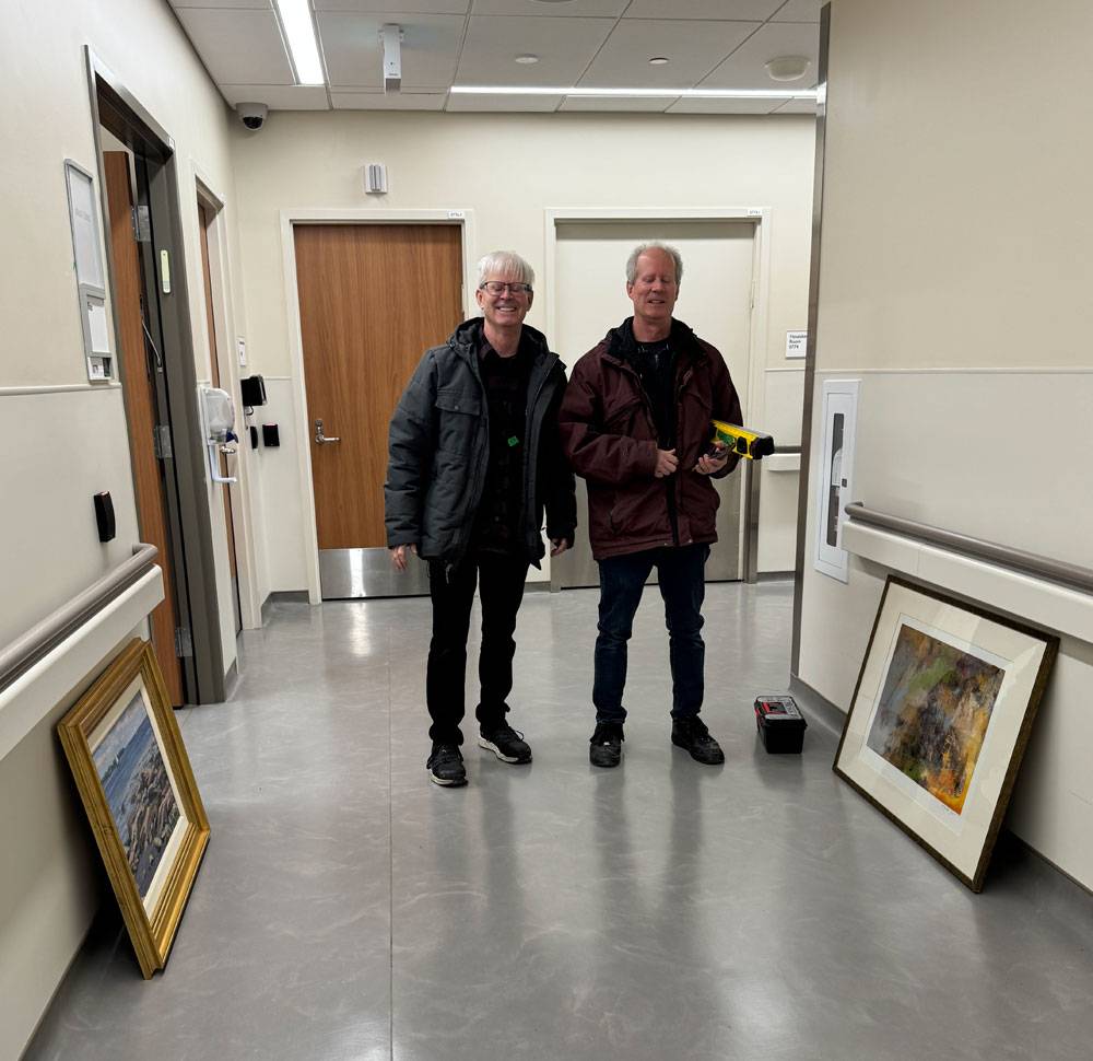 Jim and Bruce, the incomparable installation team behind JB Art Services, get ready to wield their expertise on the art that will grace the hallways of Etobicoke General Hospital's Cancer Centre.