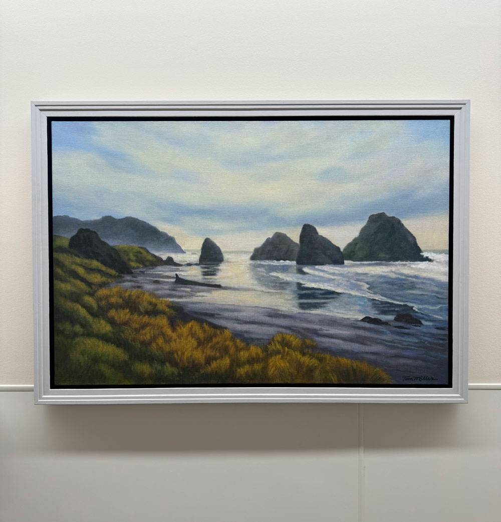 Thomas Owen Miller's painting Rocky Coast 2003 exquisitely enhances a hallway in Etobicoke General Hospital's Cancer Centre.
