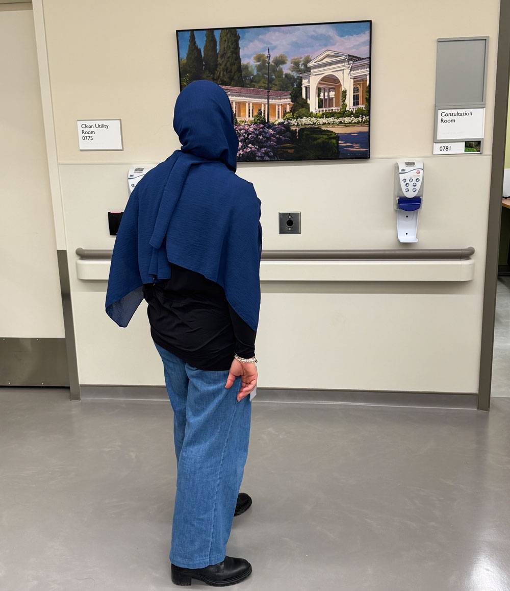 Etobicoke General Hospital's Samar Saeed takes in Gerry Sevier's striking piece Concho Y Toro Estate in a corridor of the Cancer Centre.