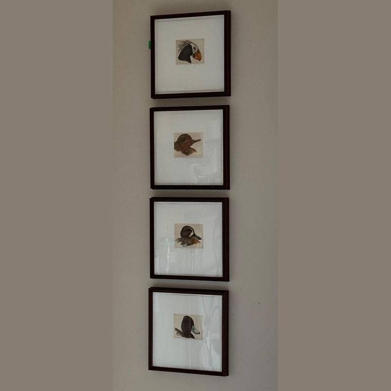 Jack Cowin's Puffin Drake, Green Winged Teal Drake, Blue Winged Teal Drake and Lesser Scaup Drake (top to bottom) are gorgeously showcased on a wall in the Inpatient Oncology/Palliative Care Unit of Brampton Civic Hospital.