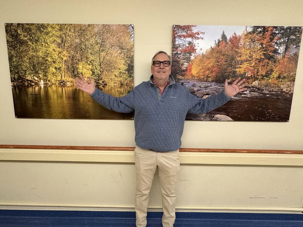 Dr Michael Weinberg of ArtWorks for Cancer proudly presents gorgeous autumnal images by Sherman Hines, newly installed in a hallway in Unit 6PMB (Thoracic Surgery and Respirology Unit) at UHN Toronto General Hospital.