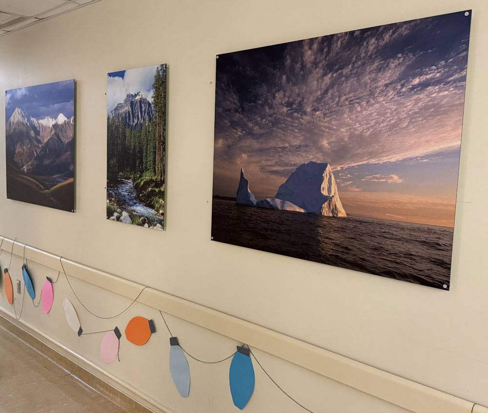 In November, 2025, we installed 50 artworks in two locations at University Health Network (UHN)’s Toronto General Hospital (TGH): Unit 6PMB (Thoracic Surgery and Respirology Unit) and Unit 9ES (General Surgery and Acute Care Inpatient Unit). Forty-four of the images were by Canadian photographer Sherman Hines and six were donated by staff from TGH. As previously, AWFC supporter Posterjack developed the presentation of these images using a refined metal print process. The images are rendered in large format and crisp resolution, and because they are placed on metal, this makes it easy to clean and maintain them, so important in these sensitive facilities.