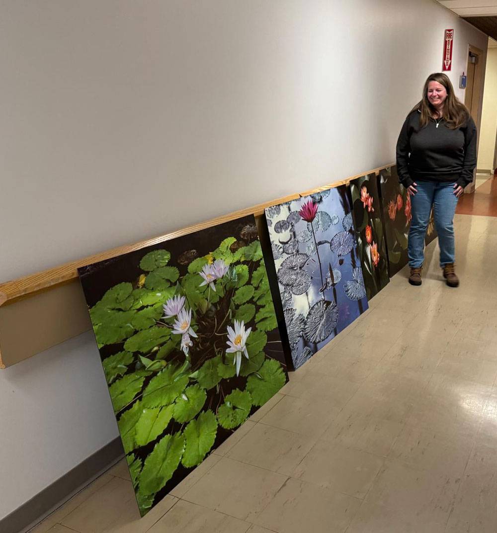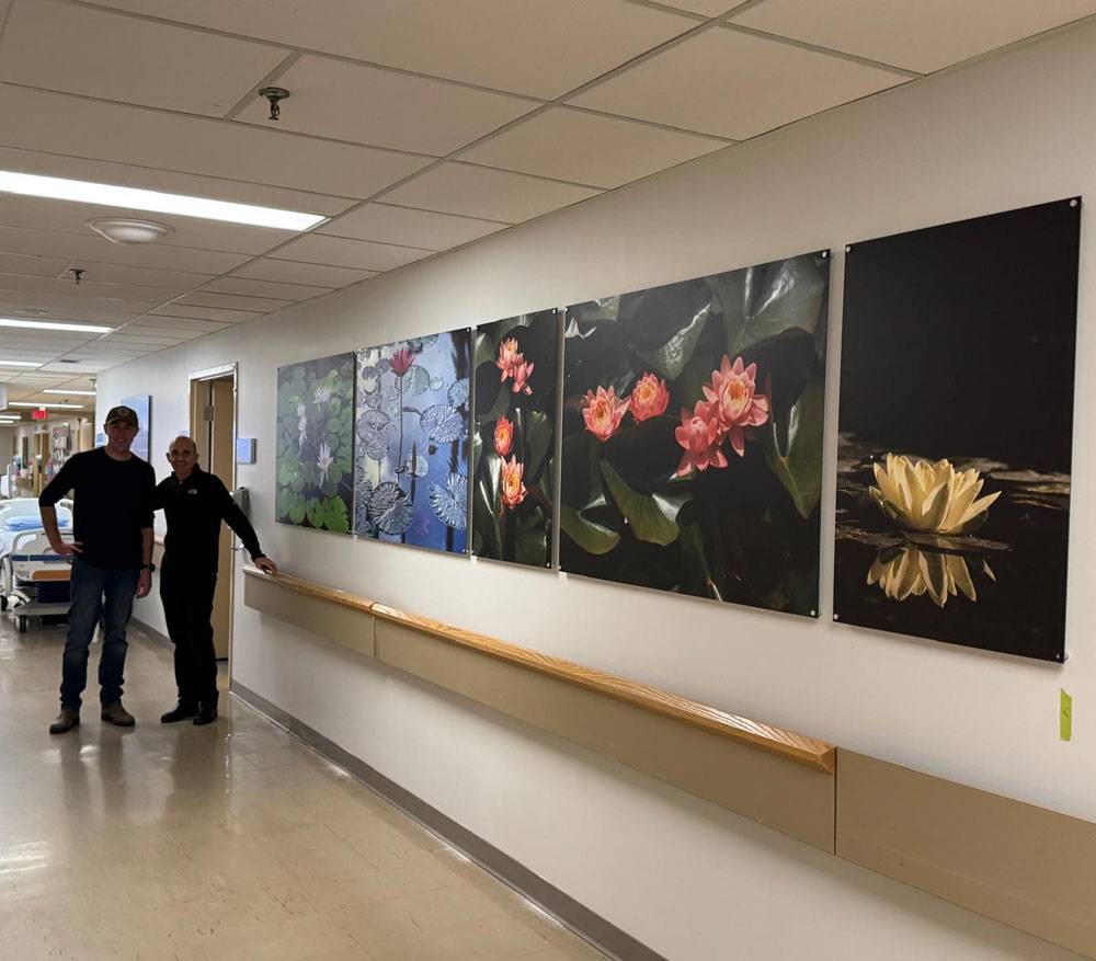 A Collection of Water Lillies by Sherman Hines seem to float down a corridor in Unit 9ES (General Surgery and Acute Care Inpatient Unit) at UHN Toronto General Hospital.